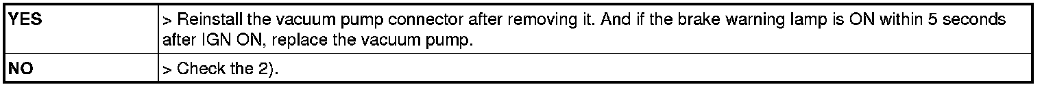 (3) Is the brake warning lamp ON within 15 - 35 seconds after removing the vacuum hose from the brake booster?