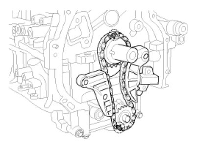 The timing marks of balance shaft & oil pump module sprocket and crankshaft sprocket should be matched with the timing marks (color link) of balance shaft chain.