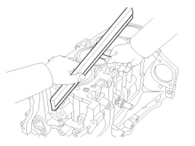 12. Apply liquid gasket to the mating surface of cylinder block and ladder frame.