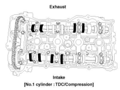 (2) Check that the TDC marks (A) of the CVVT sprockets are in straight line on the cylinder head surface as shown in the illustration.