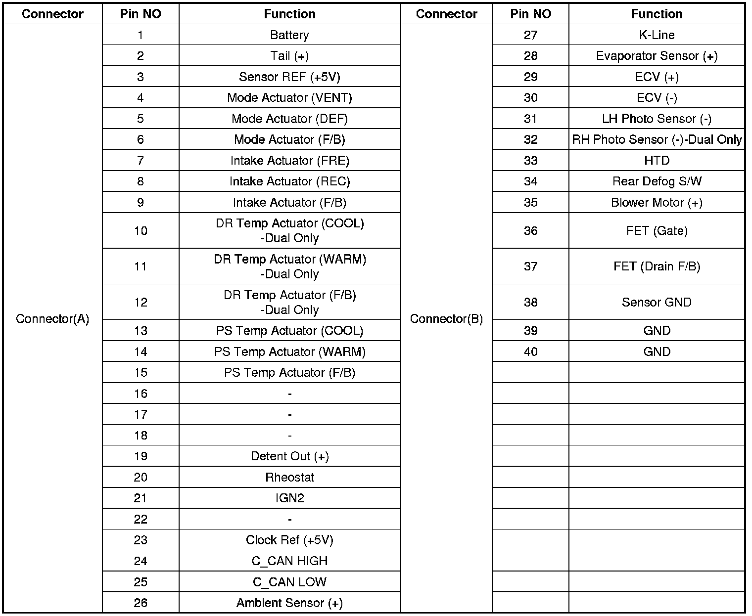 Connector pin function