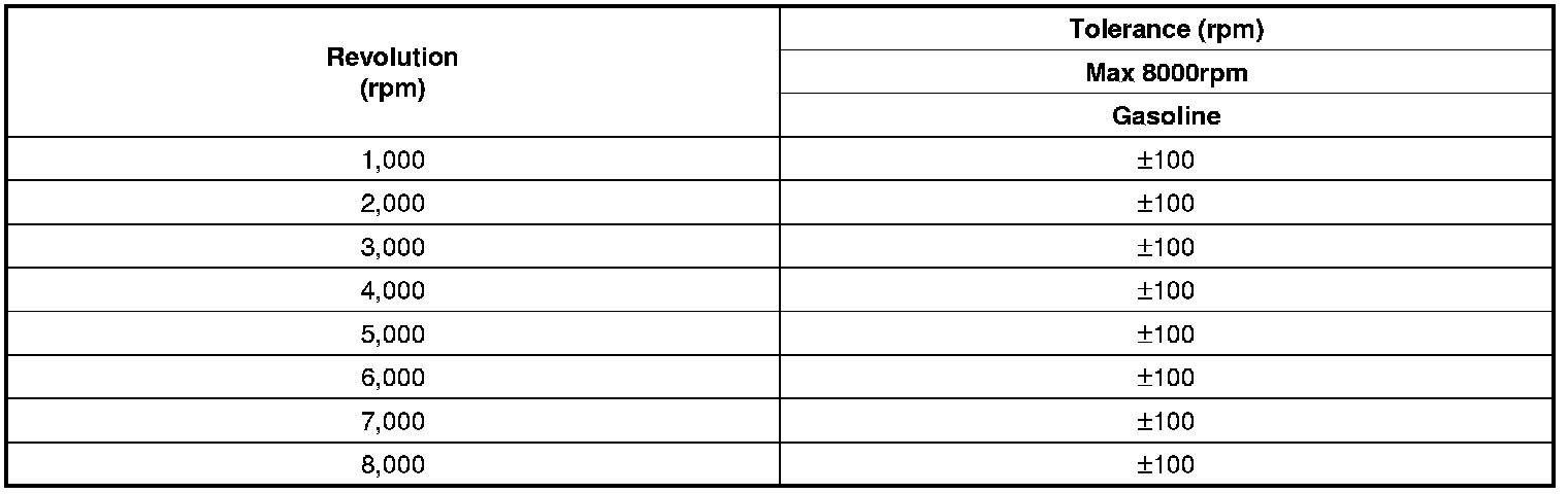 2. With the engine started, compare the readings of the tester with that of the tachometer. Replace the tachometer if the tolerance is exceeded.