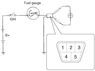 3. Turn the ignition switch to the ON, and then check that the bulb lights up and the fuel gauge needle moves to full.
