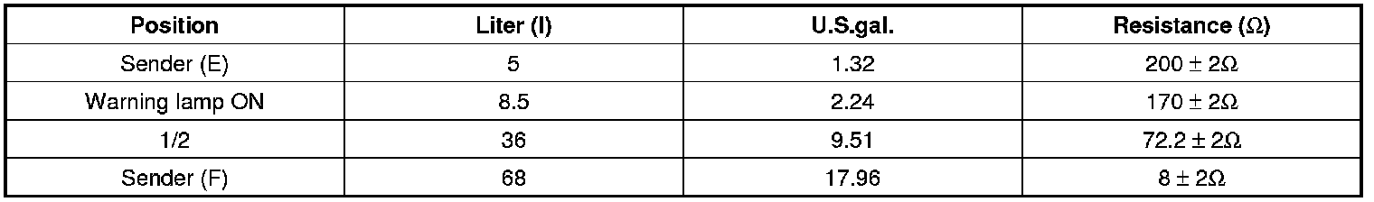 2. If the resistance value is not as shown in the table, replace the temperature sender.