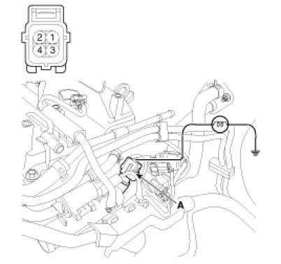 1. Disconnect the wiring connector (A) from the engine coolant temperature sender in the engine compartment.