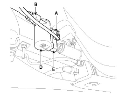 5. Release the lever (E), and then remove the canister close valve (F) after rotating it in the direction of the arrow in the figure.