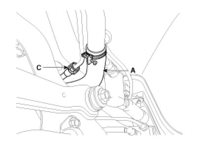 4. Disconnect the fuel feed tube quick connector (C).