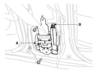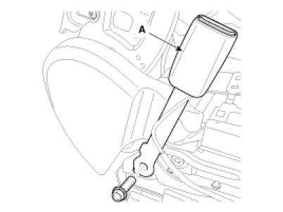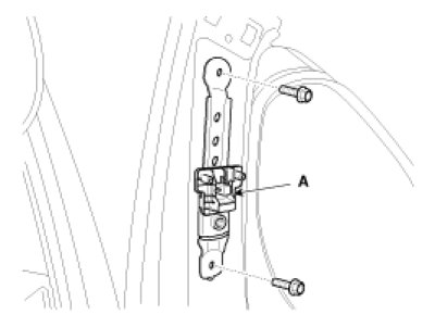 2. After loosening the mounting bolt, then remove the front seat belt buckle (A).