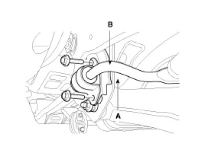 4. Loosen the mounting bolt and then remove the stabilizer bar (B) with the sub frame (A).