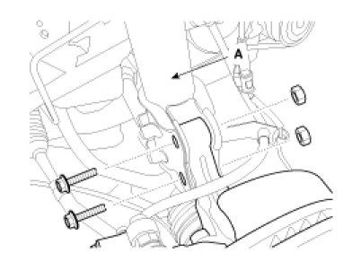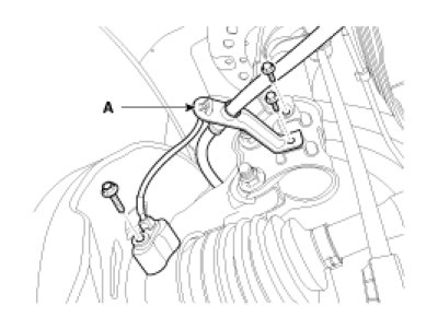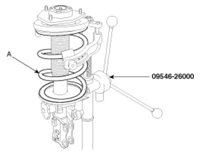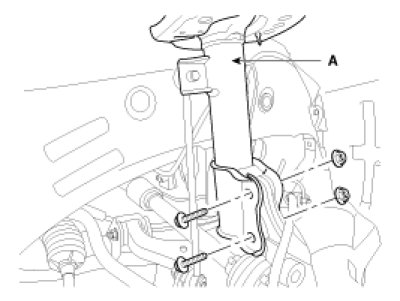 4. Disconnect the front strut assembly (A) with the knuckle by loosening the bolt & nut.