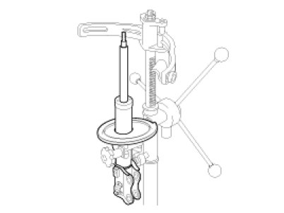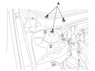 5. Remove the front strut assembly and then loosen the strut mounting nuts (A).