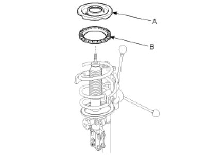 3. Remove the insulator assembly (A) and the strut bearing (B).