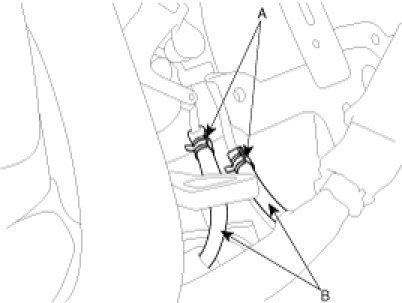 5. Disconnect the hose (B) after removing the automatic transaxle fluid cooler hose clamp (A).