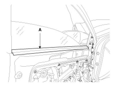 4. Carefully adjust the glass (B) until you can see the bolts, then loosen them. Separate the glass from the glass run and carefully pull the glass out through the window slot.