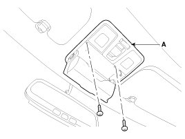 3. Disconnect the connectors (A) of sunroof switch and lamp switch then remove the overhead console lamp assembly.