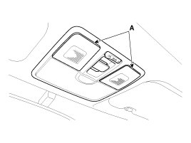 4. If necessary to replace the bulb, replace the bulb after removing the overhead console lens (A).