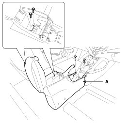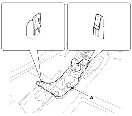 5. After loosening the mounting screws and bolts, then remove the floor console assembly (A).