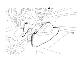 6. After loosening the mounting clips and screws, then remove the console side cover (A).