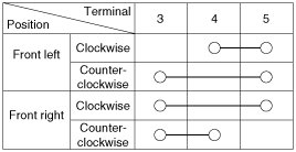 2. Check for continuity between the terminals and ground according to the table.