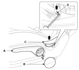 2. After loosening the mounting screw, then remove the front seat shield inner cover (A).