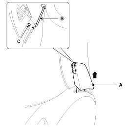 5. To disengage the lock pin (C), lift up the front seat back board (A) to the arrow direction with holding the bottom place (B).