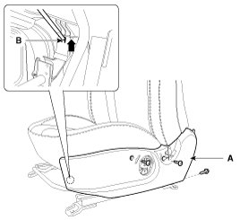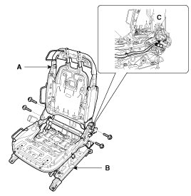 4. After loosening the mounting bolts, then disconnect the seat back frame (A) and seat cushion frame (B).