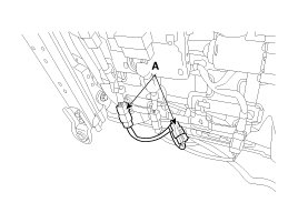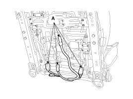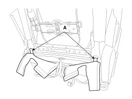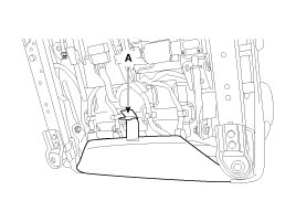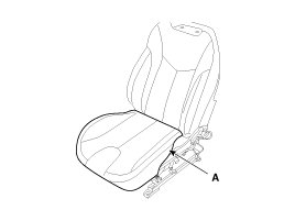 2. After loosening the front seat assembly mounting bolts, remove the front seat assembly (A).