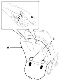3. Push the protector (A), and then seat cushion cover (C) from the frame(B).