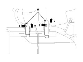 1. After loosening the mounting bolts, then remove the rear seat cushion (A).