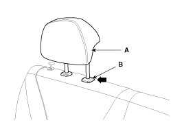 2. Push the lock pin (B), remove the headrest (A).