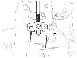 3. Loosen the adjusting nut (A) and the parking brake cables.