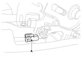 7. Install the parking brake cable adjuster, then adjust the parking brake lever stroke by turning adjusting nut (A).