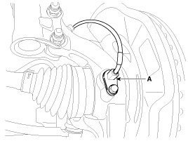 5. Disconnect the front wheel speed sensor connector (A) and then remove the front wheel speed sensor.