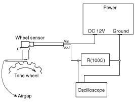 - In order to protect the wheel speed sensor, when measuring output voltage, a 100 Ohms resister must be used as shown.