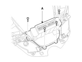 1. Using a screwdriver or remover, remove the crash pad side cover (A).