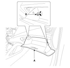 3. After loosening the mounting screws, then remove the crash pad lower panel (A).