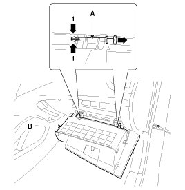 2. Disconnect the guide (B) from the glove box (A).