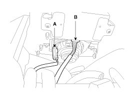 4. Disconnect the crash pad switch connectors (A) and diagnosis connector (B).