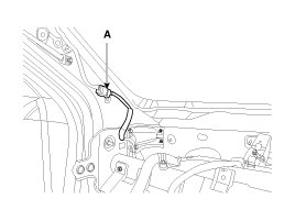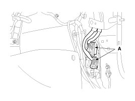 3. Disconnect the connector (A) and the mounting clips in the front pillar.