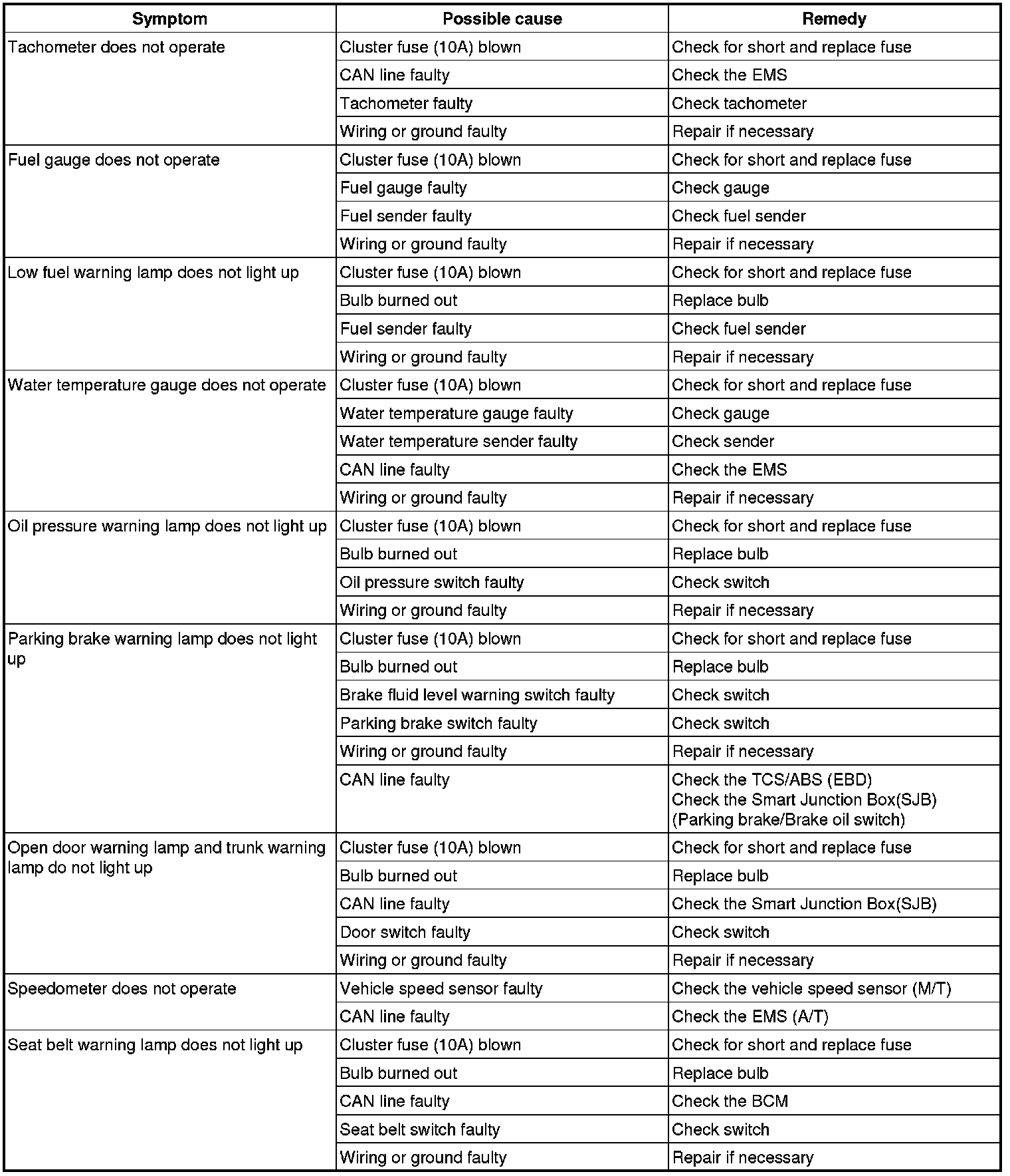Instrument Panel, Gauges and Warning Indicators: Testing and Inspection