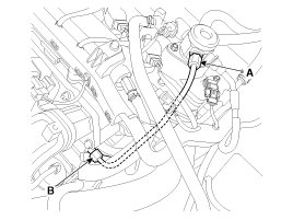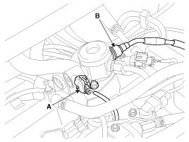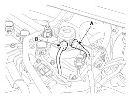 - Be sure to check the low pressure fuel hose quick-connector (A) is completely connected to the high pressure fuel pump until a confirmation 'click' sound is heard.