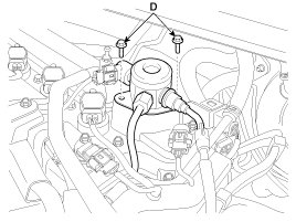 7. Remove the installation bolts (D), and then remove the high pressure fuel pump from the cylinder head assembly.