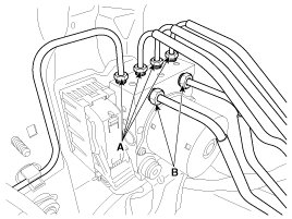 4. Loosen the HECU bracket nuts (A), then remove HECU and bracket.
