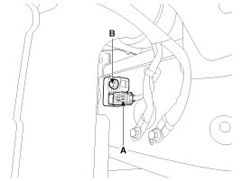 4. Remove the front impact sensor mounting bolt (B).