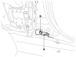 5. Loosen the side impact sensor mounting bolt (B) and remove the side impact sensor.