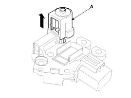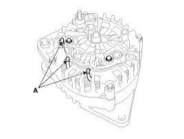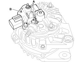 2. Remove the mounting bolts (A) and the brush holder assembly (B).