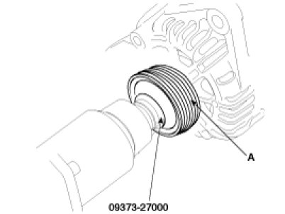 5. Remove the OAD(Overrunning Alternator Decoupler) pulley (A) using the special tool.