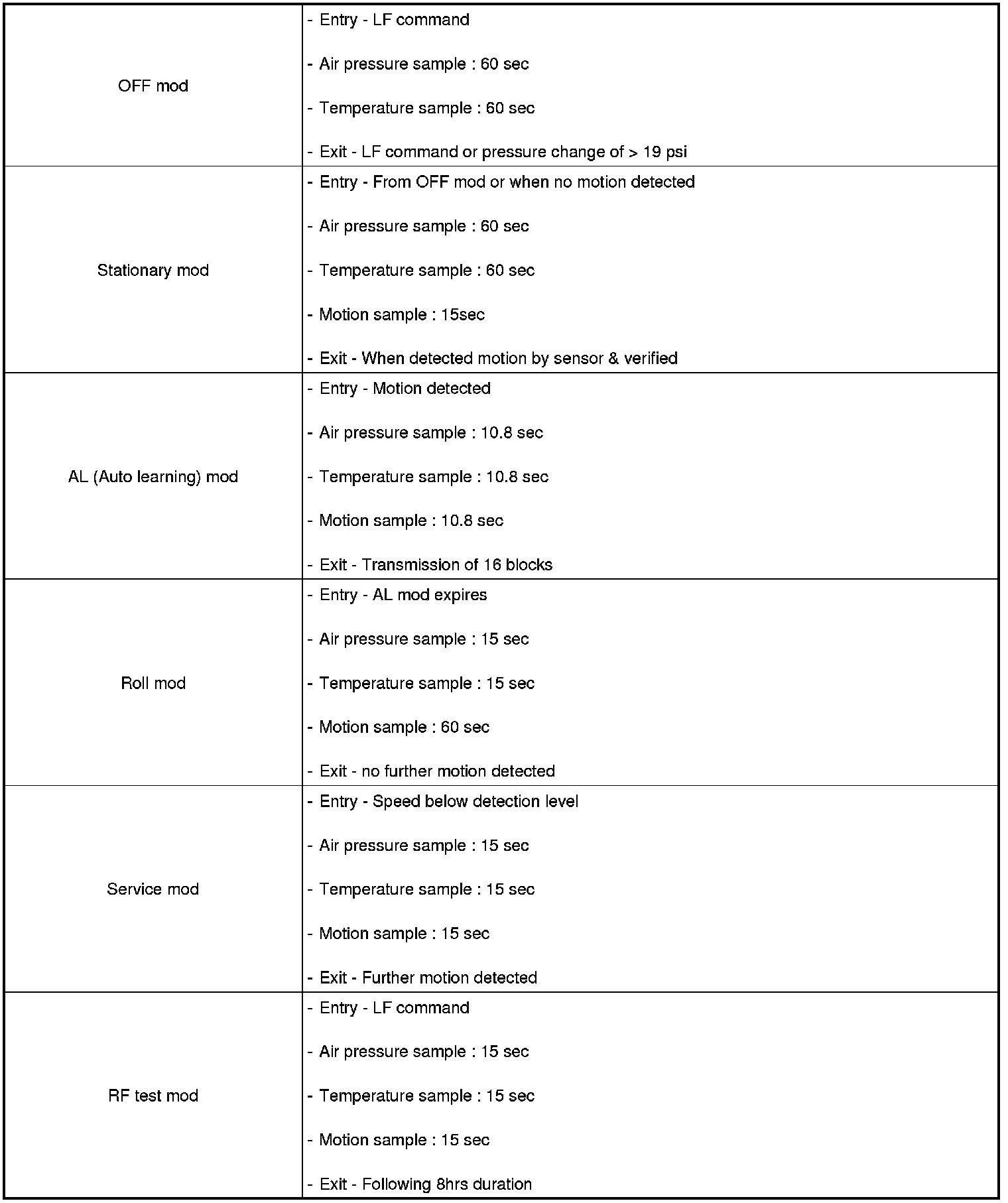 2. RF (Radio Frequency) Transmit (Tire pressure, Temperature, Acceleration, Battery voltage,Sensor ID, Sensor Status information.)