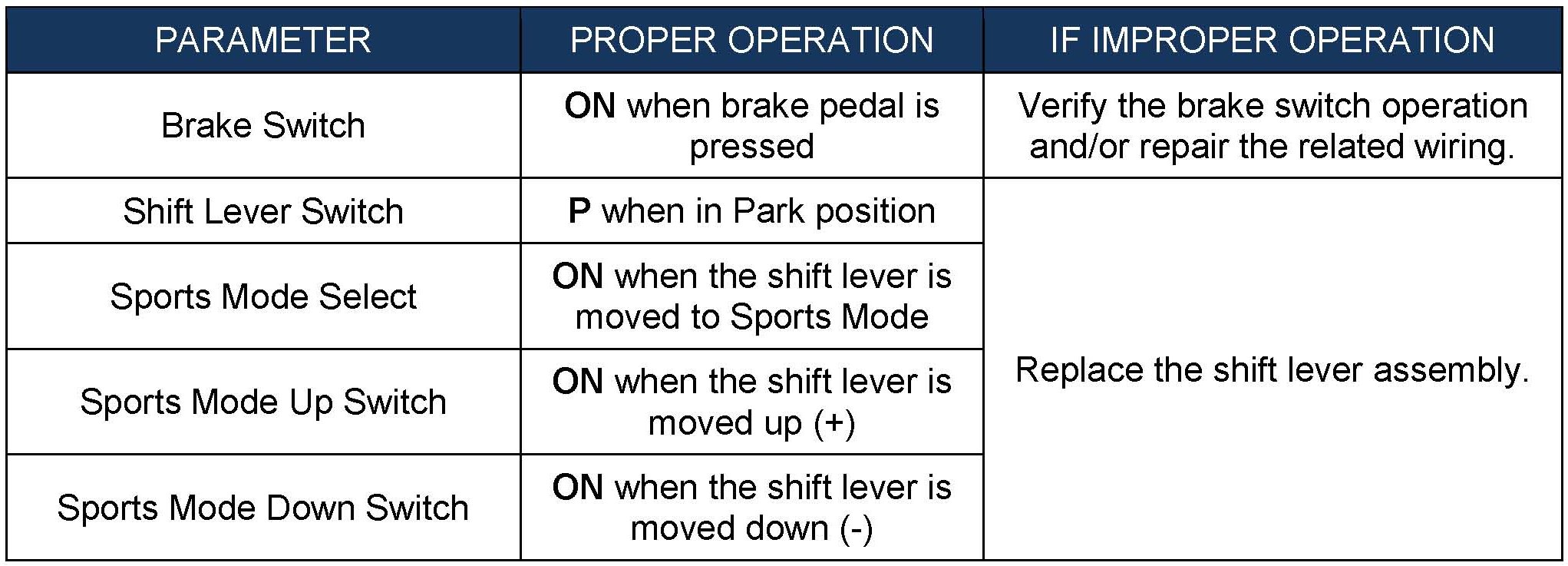 AUTOMATIC TRANSAXLE SHIFT LEVER DIAGNOSIS (6-SPEED)