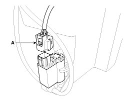 3. Remove the washer hose and disconnect the washer motor connector (A).
